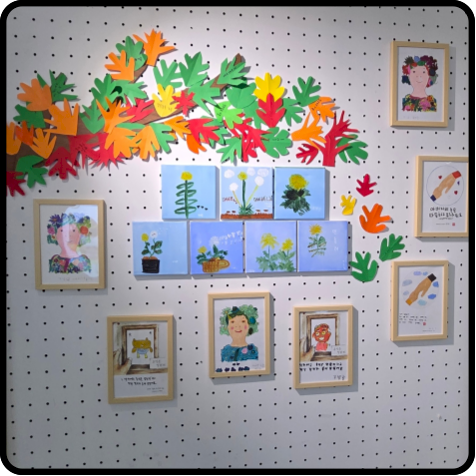전시된 작품은 짧은 동화를 읽고 느낌을 함께 공유하면서 각자의 개성과 해석을 더해 완성한 것으로 색채와 형태에서 각 작가의 독창적인 감각과 개성이 선명하게 드러납니다.