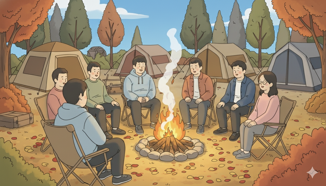 선선한 가을바람이 옷깃을 파고들고, 타오르는 모닥불 앞에 둘러앉으니 금세 온기가 퍼져왔습니다.