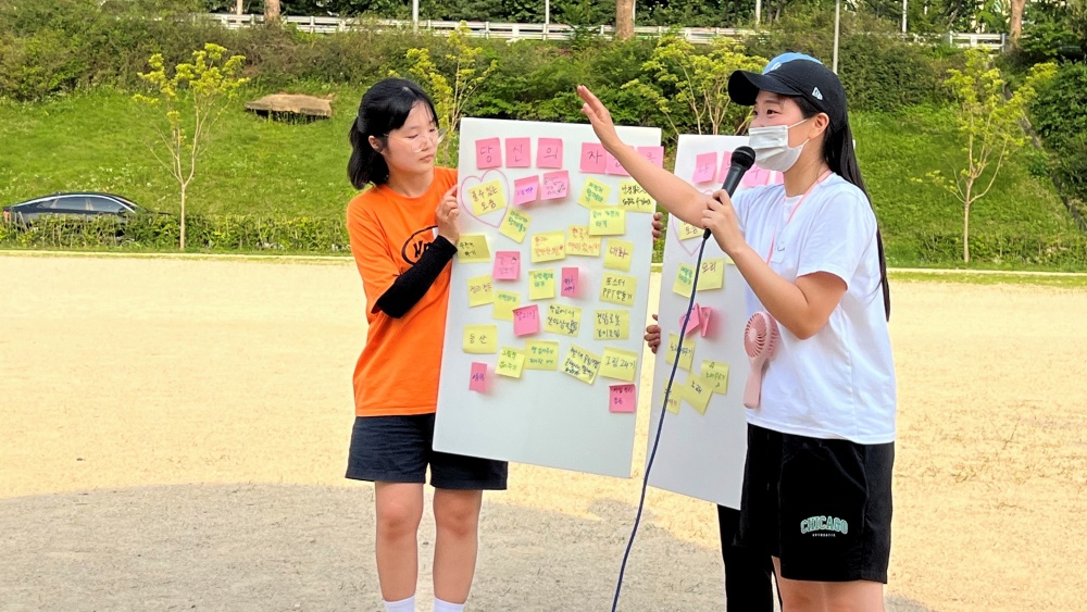 공차기 활동을 마친 후 한자리에 모여 상호나눔 자원조사 결과를 나누었습니다.