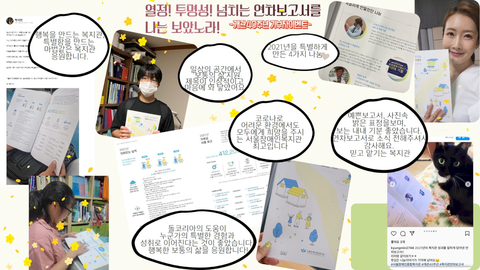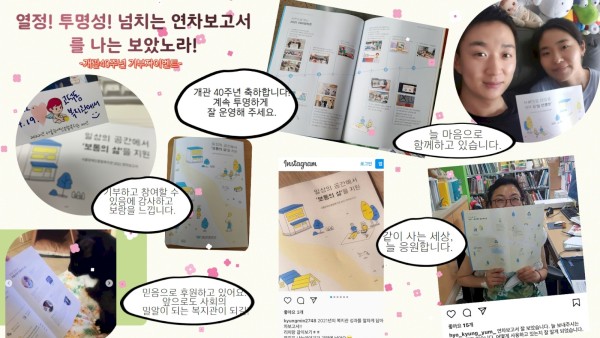 2021 연차보고서와 함께한 복지관 기부자의 메시지 "열정! 투명성! 넘치는 연차보고서를 나는 보았노라!"