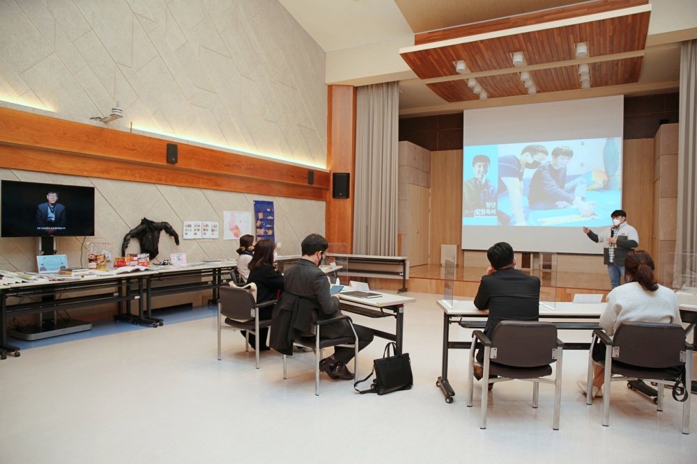 3월 16일(수), 선진기관 견학차 방문한 광주광역시발달장애인지원센터, 서울특별시발달장애인지원센터 직원들에게도 진열공간을 통해 사업 운영 내용들을 눈으로 확인할 수 있도록 하고, 방역을 마친 ‘푸르메학교’ 공간에서도 공간배치 및 지원전략에 관한 정보를 제공했습니다.