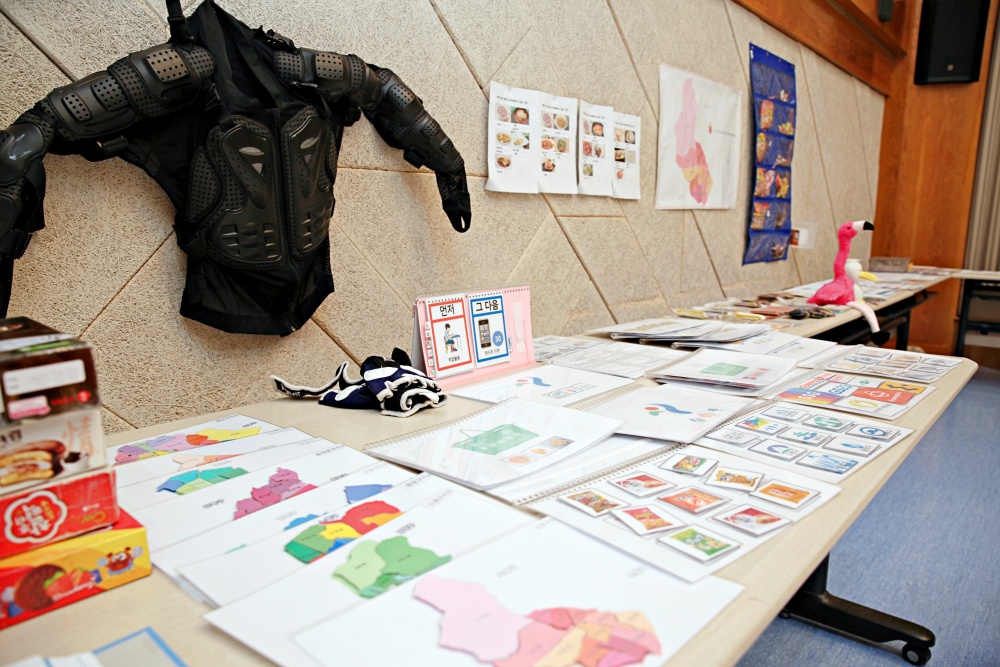 (사진) 푸르메학교에서 이용자에게 지원했던 시각화자료 및 교구, 보상체계에 사용된 물품 등 진열공간