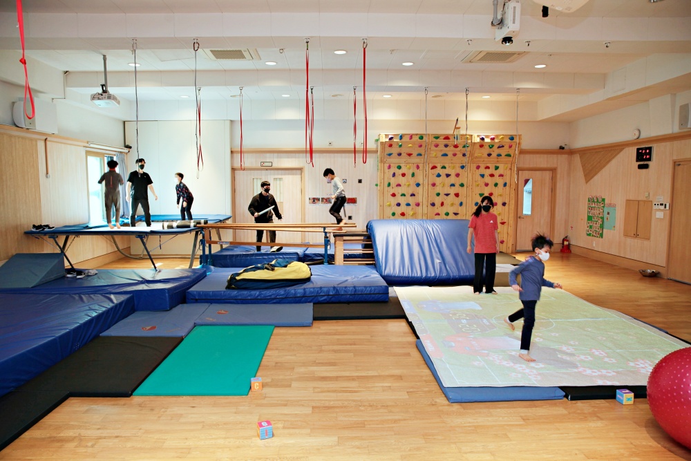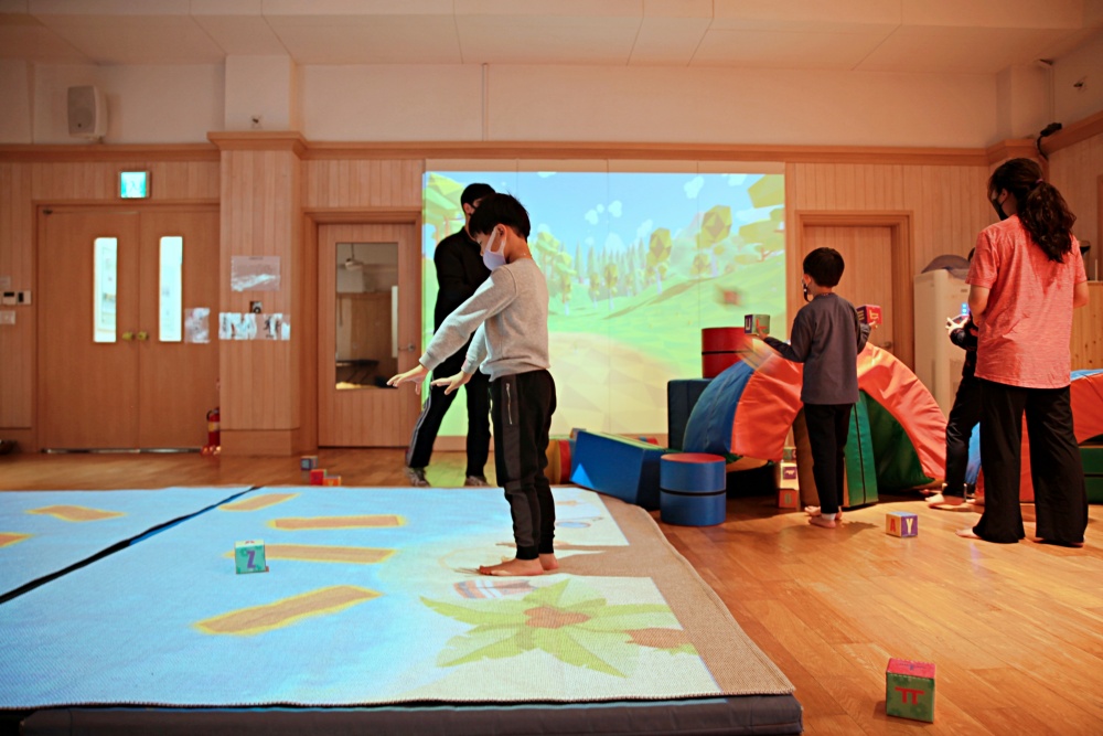 심리운동에 활용되는 각 기구의 위치와 역할, 무엇보다 안전에 더 유의해야 할 이용자의 동선과 행동까지 꼼꼼히 생각했어요. 실내 클라이밍, 구름사다리, 늑목, 트램펄린 등과 조화롭게 연결되는 디지털 콘텐츠를 선별하면서 융합 공간을 구성했죠.” -발달지원팀 전인곤 파트장
