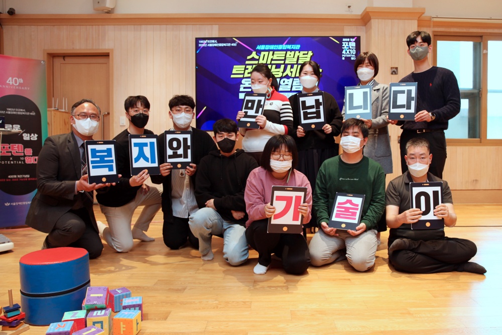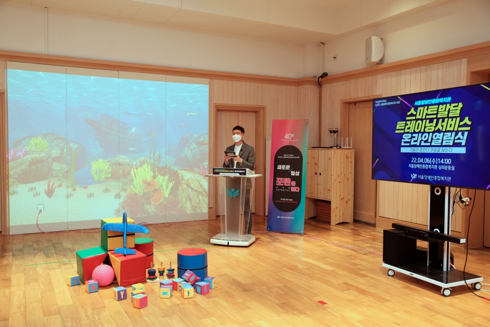서울장애인종합복지관(관장 곽재복)은 4월 6일(수) 오후 2시 ‘스마트발달트레이닝서비스’ 온라인 열림식을 복지관 심리운동실에서 직원과 복지관 이용자가 참석한 가운데 개최하였습니다.