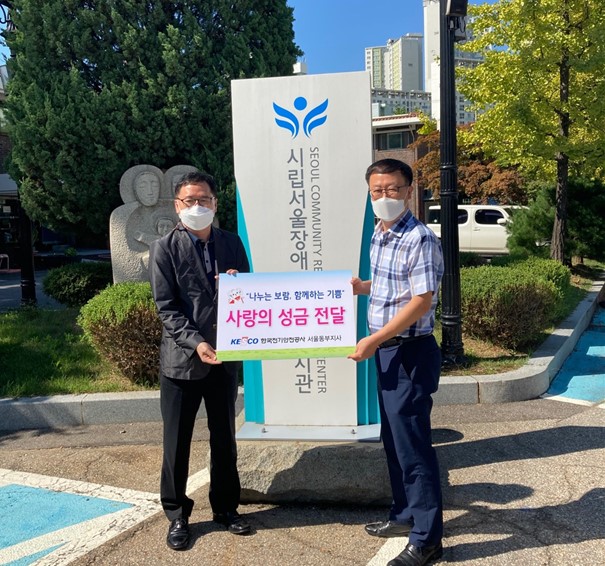 한국전기안전공사 서울동부지사에서 명절을 맞아 성금을 전해주셨습니다.