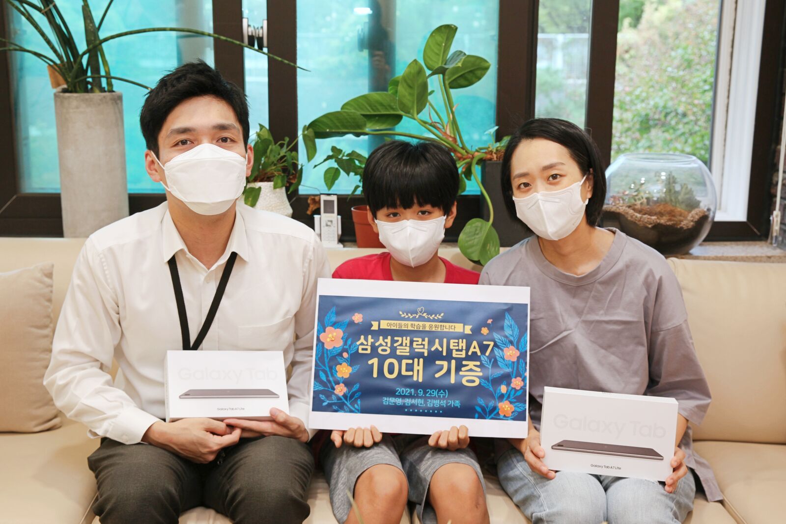 2차 긴급재난지원금을 조금 더 의미있게 사용하고 싶었던 김문영 씨, 김서현 씨 부부와 자녀 병석 군이 복지관을 찾아 태블릿 PC 10대를 기부했습니다.
