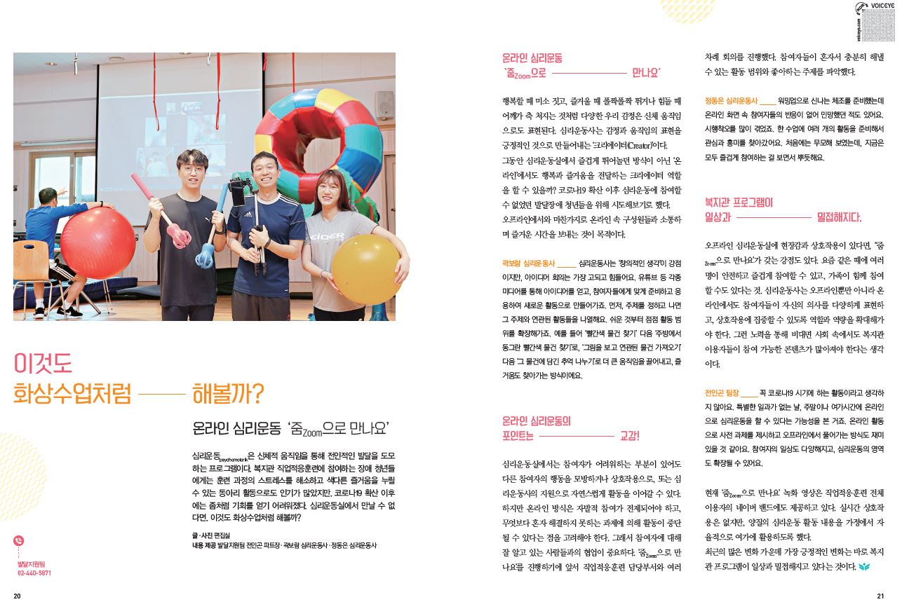 발달지원팀 심리운동사들은 코로나19 확산 이후 심리운동에 참여할 수 없었던 발달장애 청년들을 위해 온라인 심리운동을 시도해보기로 했습니다.