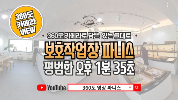 360도 카메라로 파니스 카페테리아 오전과 오후의 모습을 각각 1분, 1분 30초 씩 담았습니다.