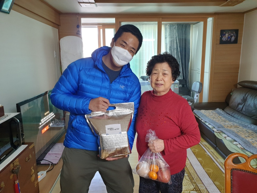 도시락을 받으신 가정 사진 도시락을 받으신 어르신사진