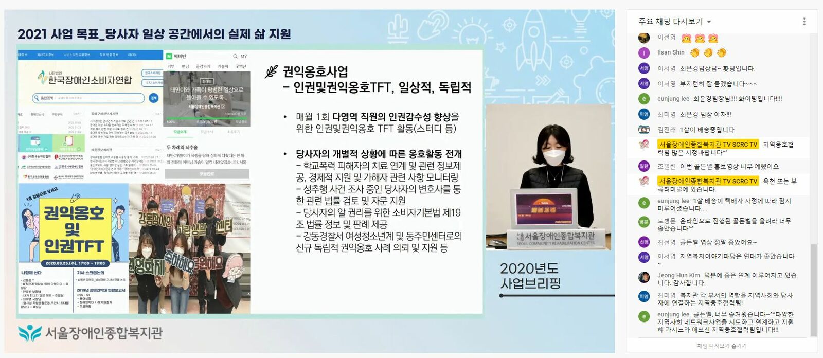 (사진_서울장애인종합복지관 유튜브 채널 스트리밍으로 진행한 사업브리핑)