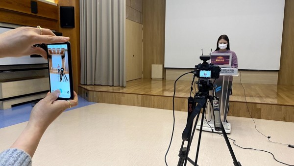 (사진_온라인 사업브리핑 발표자와 송출 담당 직원)