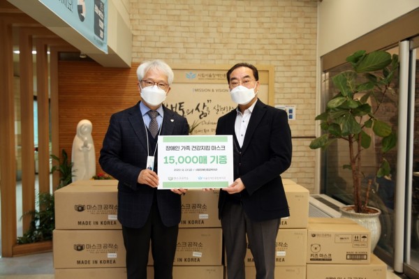 마스크를 전달하기 위해 금천구에서부터 직접 복지관을 찾은 김용일 마케팅 이사는 예전 여행사를 운영하던 때에 여러 장애인단체와 일하며 몸이 불편한 분들을 만났다고 합니다. 코로나19 상황처럼 사회적으로 대다수가 어려움을 겪는 때에는 자칫 사회에서 소외될 수 있는 장애인, 노인을 더 많이 살피고 꼭 기억해야 하기에 우리 복지관뿐만 아니라 여러 사회복지 기관(단체)에 마스크를 직접 기증하고 있다고 했습니다.