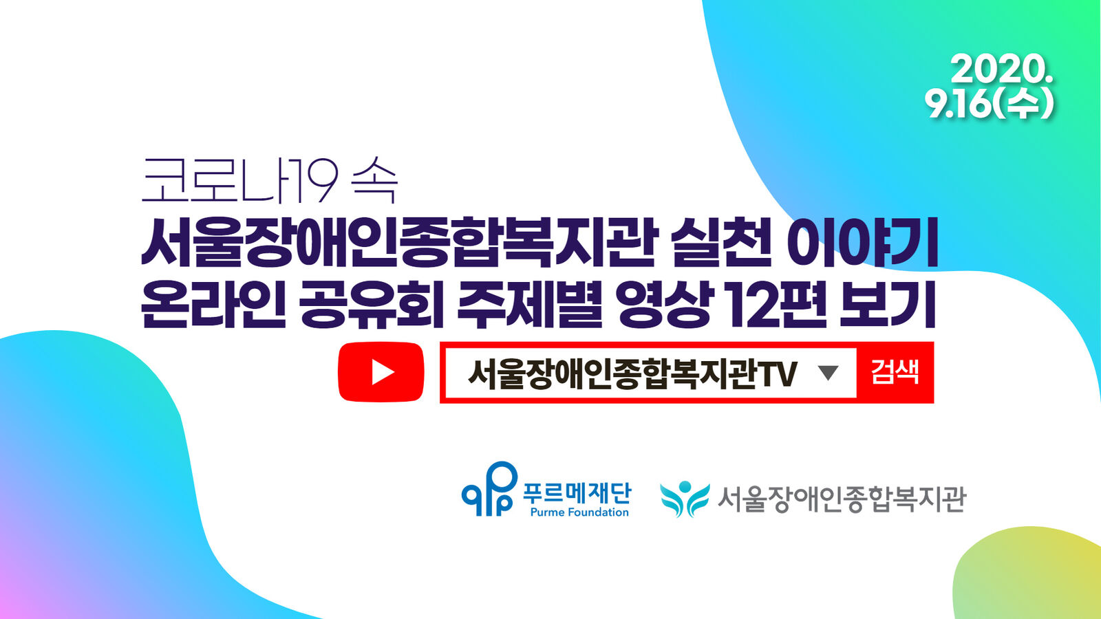 코로나19 속 서울장애인종합복지관 실천 이야기 온라인 공유회 영상을 서울장애인종합복지관TV(유튜브)에 공개합니다.