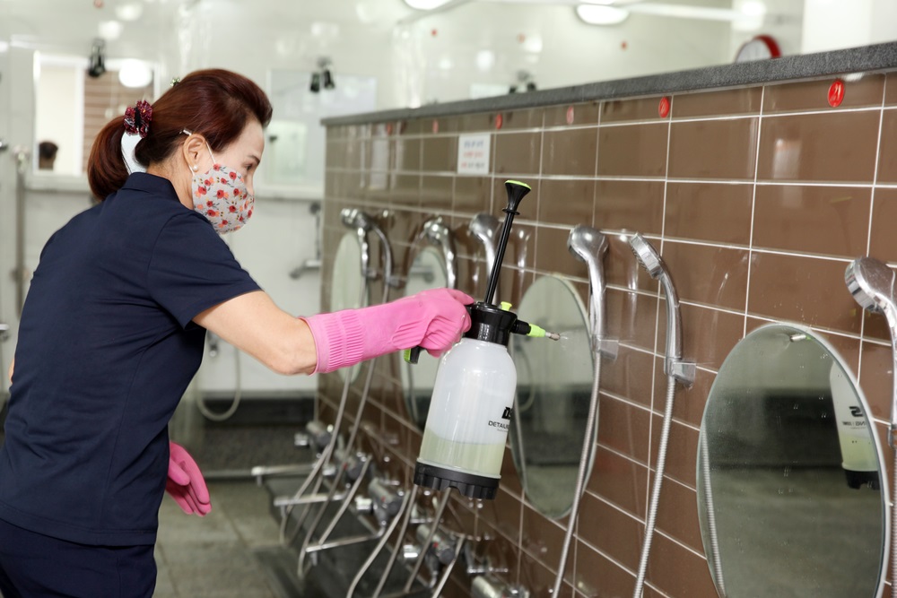 수중재활센터 입장 시 발열체크는 기본, 매시간 프로그램 시작 전과 종료 시마다 이용자가 사용한 기구 소독, 탈의실 및 샤워실 소독, 특히 샤워실은 샤워커튼으로 공간을 최대한 분리하였고, 이용자가 사용한 공간 곳곳을 위생적으로 관리하고 있습니다.
