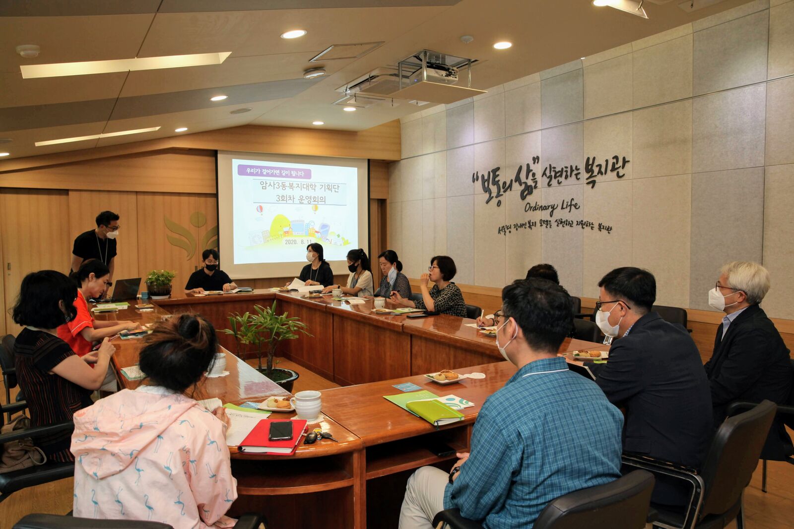 이날 회의는 '암사3동복지대학 슬로건 결정', '동복지대학 운영교칙 논의' 뿐만 아니라 '교육 내용 순서 및 필수 내용 조정' 등으로 진행되었습니다.