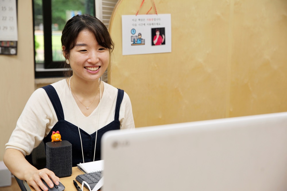"직장 다니는 보호자 도움 없이 훈련생 스스로 온라인 수업에 참여해야 하는 만큼 철저한 준비 과정이 필요했어요. 먼저 부분적으로 대면 서비스가 가능했던 기간 동안 훈련생들에게 온라인 수업 방법과 주로 사용하는 기기의 ‘줌(Zoom)’ 설치를 교육했죠. 온라인 수업을 할 수 없는 기종의 휴대폰을 사용하는 경우, 와이파이(Wi-Fi) 이용이 어렵거나 데이터 사용량에 제한이 있는 경우 등에 대해서는 복지관으로 와서 온라인 수업에 참여할 수 있도록 지원했어요."