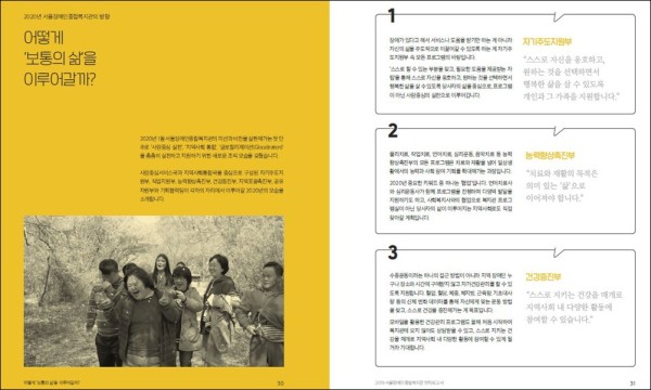 지난해 복지관이 새롭게 수립한 미션 ‘보통의 삶을 실현하는 복지관’에 따라 한 해 동안 이루어 온 성과와 과정을 담았습니다.