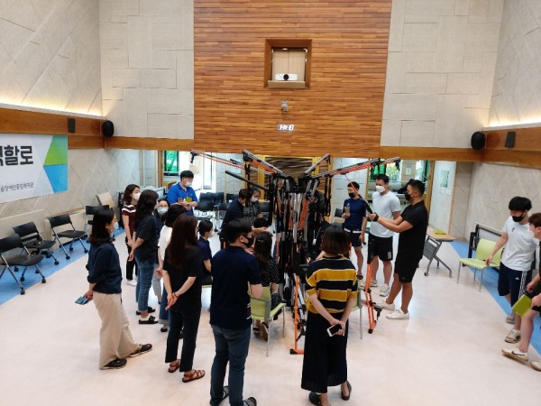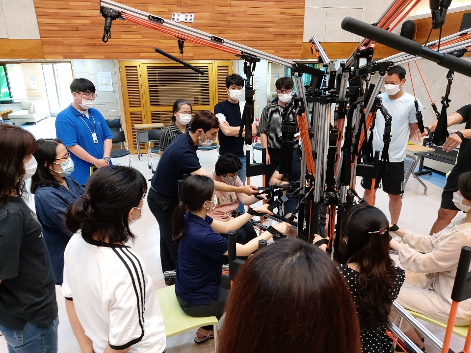 복지관 직원들 '장애인 커뮤니티 운동기구 지원사업' 관련 바디스파이더 교육