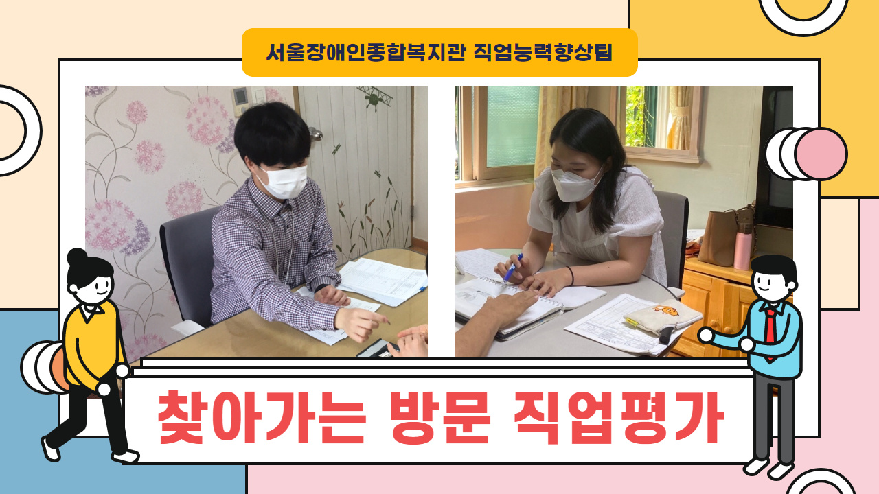 방문평가를 통해 이용자의 직업 흥미, 지역사회적응능력, 구직욕구, 정서, 행동 등을 알아보고자 했습니다.