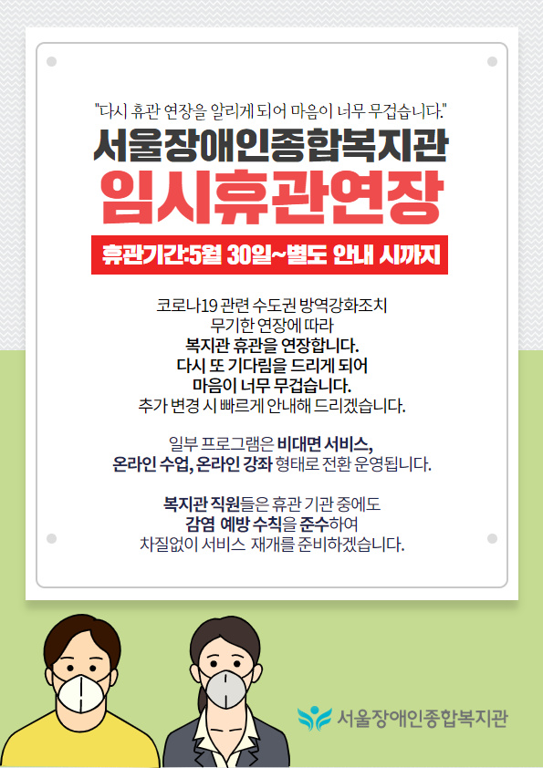 "다시 휴관 연장을 알리게 되어 마음이 너무 무겁습니다."