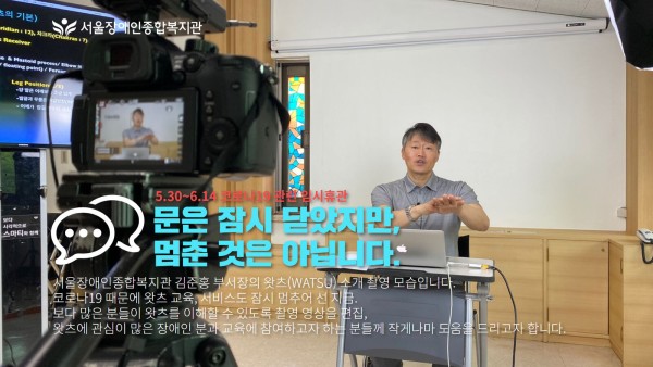 "문은 잠시 닫았지만, 멈춘 것은 아닙니다."-왓츠 설명 영상 촬영