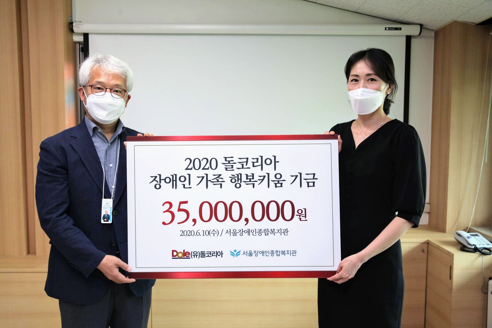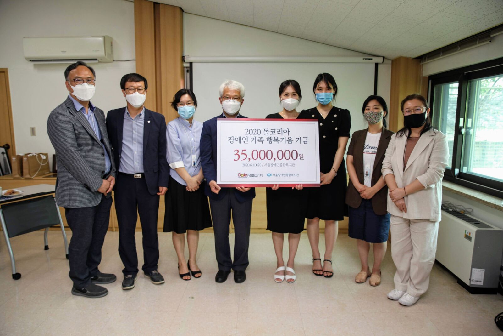 (유)돌코리아(김도형 한국지사장)와 서울장애인종합복지관(곽재복 관장)은 6월 10일 복지관에서 ‘장애인 가족 행복키움 기금’ 전달식을 진행했습니다.