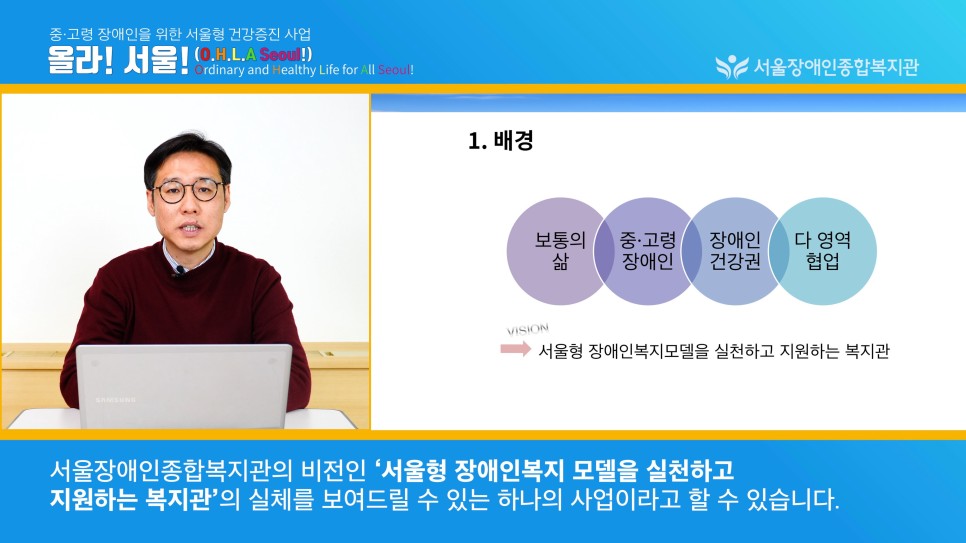 성인 중·고령장애인 서울형 건강증진사업 "올라! 서울" 프레젠테이션 15분 영상 발표
