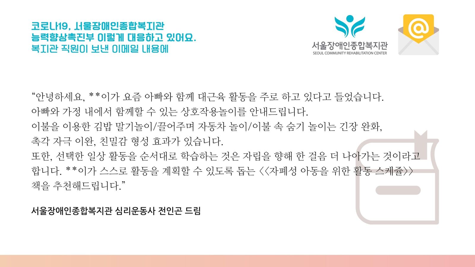 -서울장애인종합복지관 언어치료사 안수정 드림