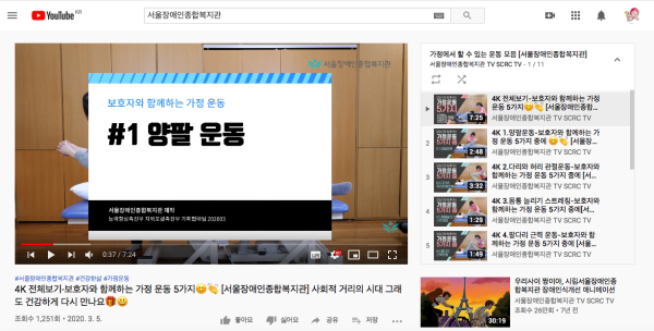 업로드된 영상은 복지관 이용자분들뿐만 아니라 관련 영상을 시청하는 다른 분들에게 도움이 되길 빕니다.