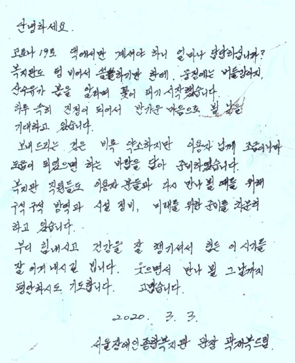 서울장애인종합복지관 관장 곽재복 드림.