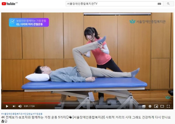 재활 프로그램 및 수중운동에 참여하지 못하는 이용자의 건강 관리를 위해 가정 지도 영상을 제작했습니다.