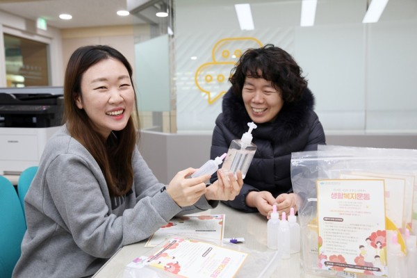 지역포괄촉진부는 총 80명의 이웃과 나눌 수 있는 손소독제 만들기 키트를 제작하여 강일마을넷(마을교육공동체) 정은영 대표에게 전달했습니다.