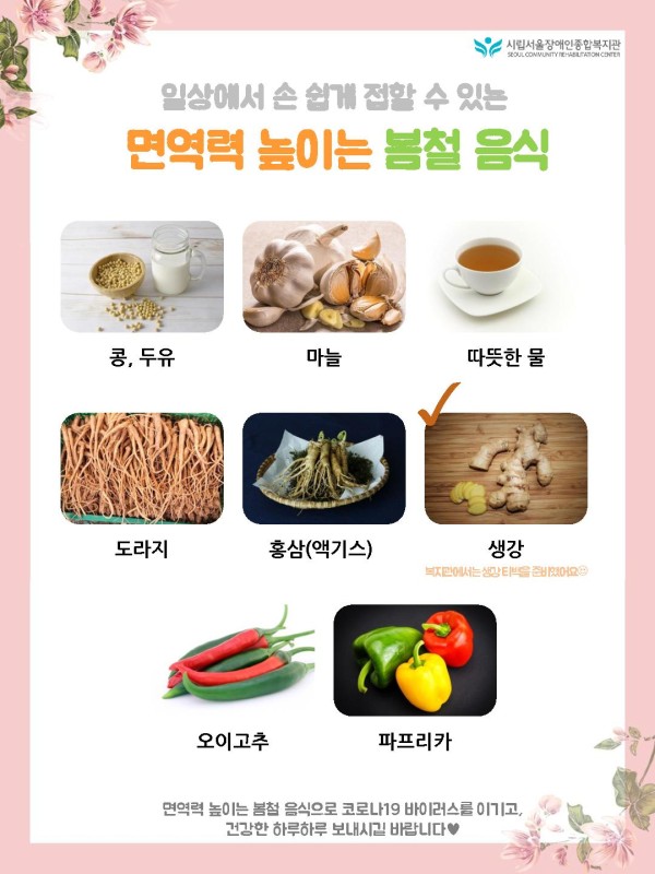 그리고 특별한 또 하나, 복지관 영양사가 알려드리는 ‘코로나19 면역력을 높일 수 있는 정보’입니다.