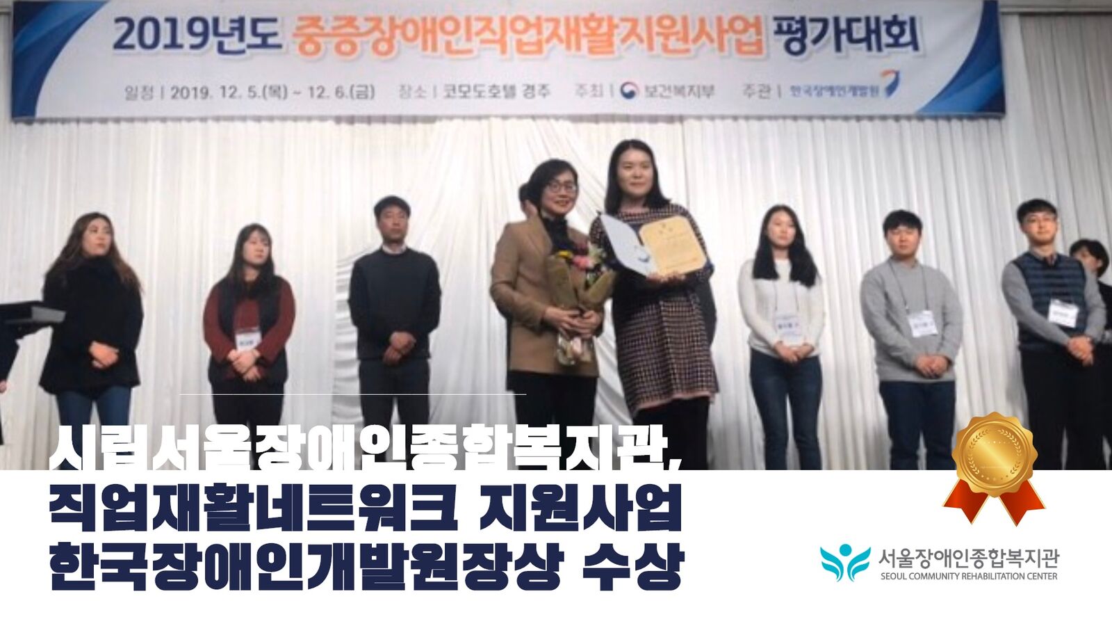 한국장애인개발원(이하 개발원)은 지난 5일부터 6일까지 이틀간 경북 경주시 코모도호텔에서 ‘2019 중증장애인직업재활지원사업(이하 직업재활사업) 평가대회’를 개최하였습니다.