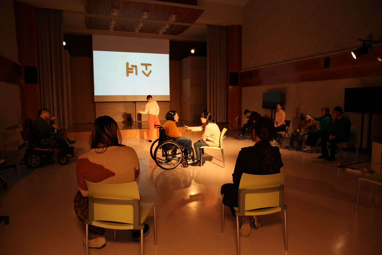 그리고 마침내 12월 5일, 복지관 강당에서 40여 명의 관객 앞에 선 9명의 참가자들이 장애, 비장애의 프레임을 넘어 고유한 몸의 움직임을 찾아가는 과정을 한 편의 공연으로 펼쳤습니다.