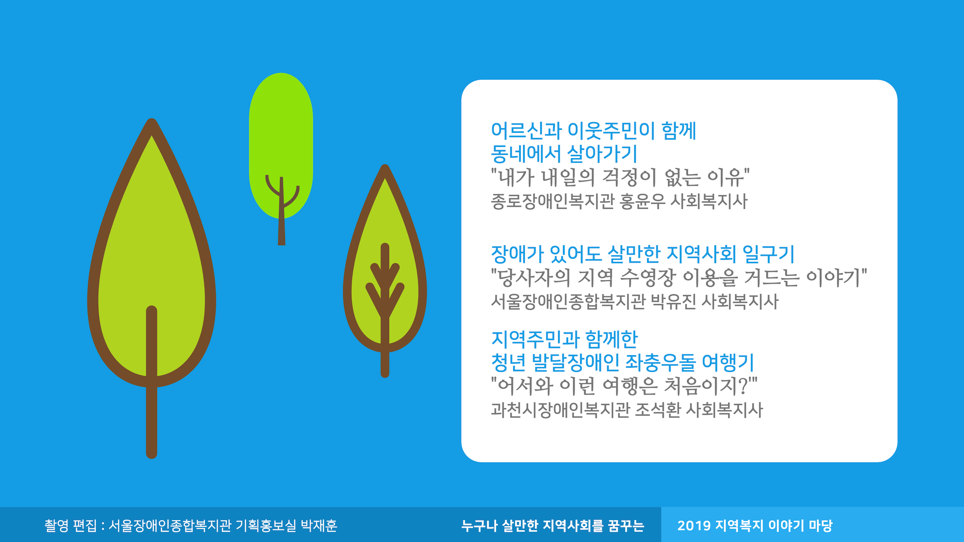 2019 지역복지 이야기마당 "누구나 살만한 지역사회를 꿈꾸는" 장애인복지관 사회복지사들의 실천이야기