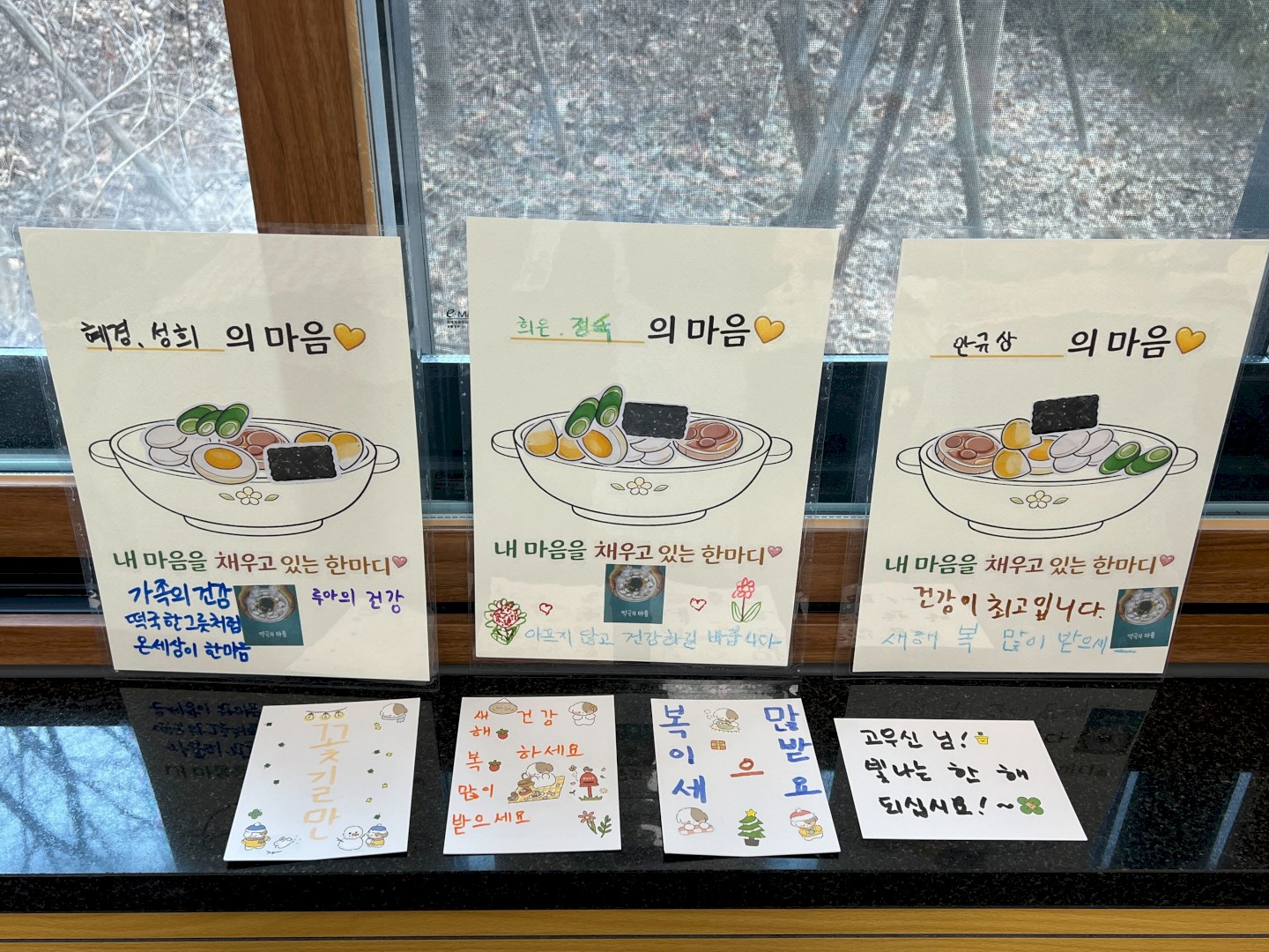 행사 장소를 예쁜 장식으로 꾸미며 설 분위기를 한껏 냈고, 고명을 정성스레 준비하고 떡국을 끓여내며 서로 "간은 맞는지", "뜨거우니 조심해요"라는 다정한 배려가 오갔습니다.