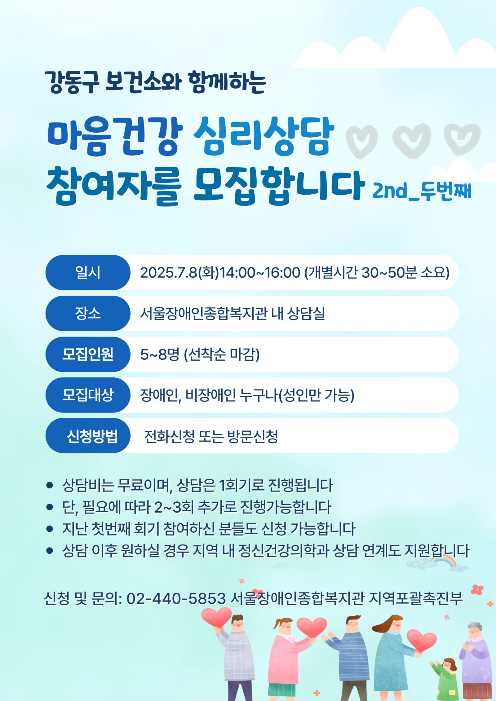 강동구 보건소와 함께하는 '찾아가는 마음건강' 심리상담 참여자 모집 (2번째)