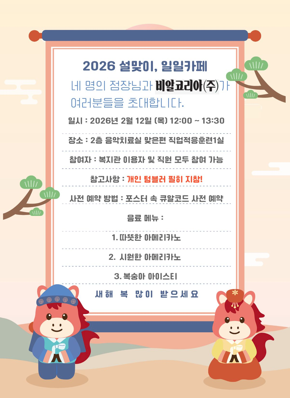 직업지원부에서 설을 맞이하여 오늘은 내가 점장(일일카페) 에 여러분들을 초대합니다!