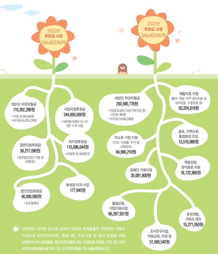 2022년 후원금품 수입과 사용내역을 공개합니다.