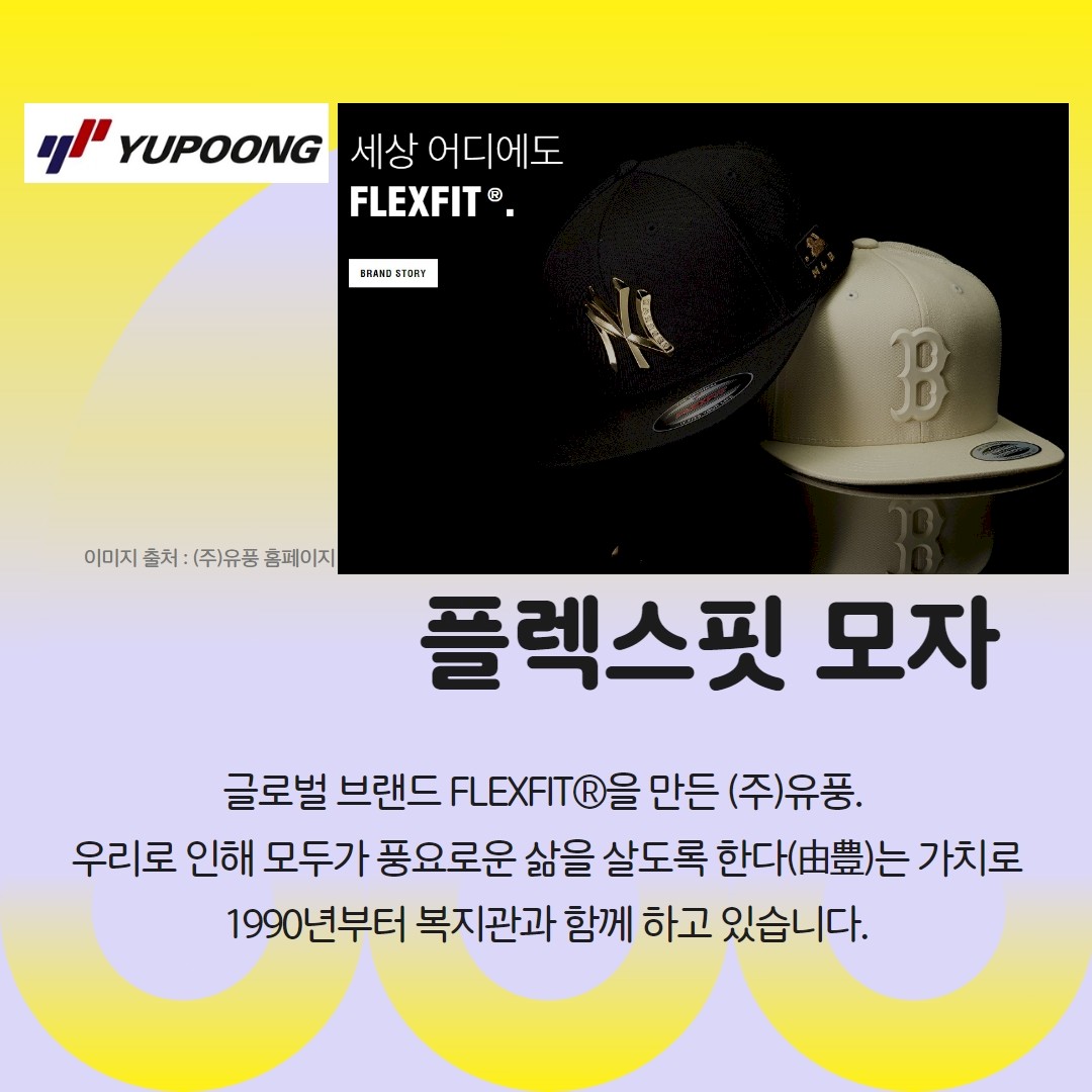 1990년부터 복지관과 함께하고 있는 (주)유풍은 '우리로 인해 모두가 풍요로운 삶을 살도록 한다(由風)'는 뜻을 사명으로 갖고 있습니다. 글로벌브랜드 FLEXFIT®을 만든 기업입니다.