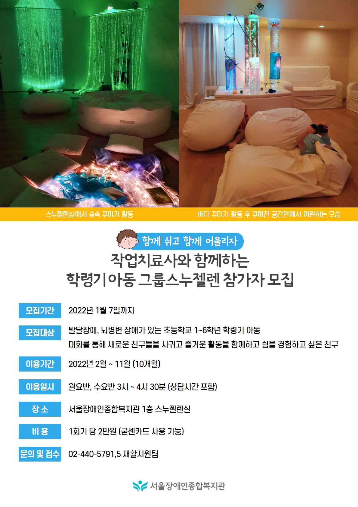 2022년 작업치료사와 함께하는 학령기 아동 그룹스누젤렌 참가자 모집(모집마감)