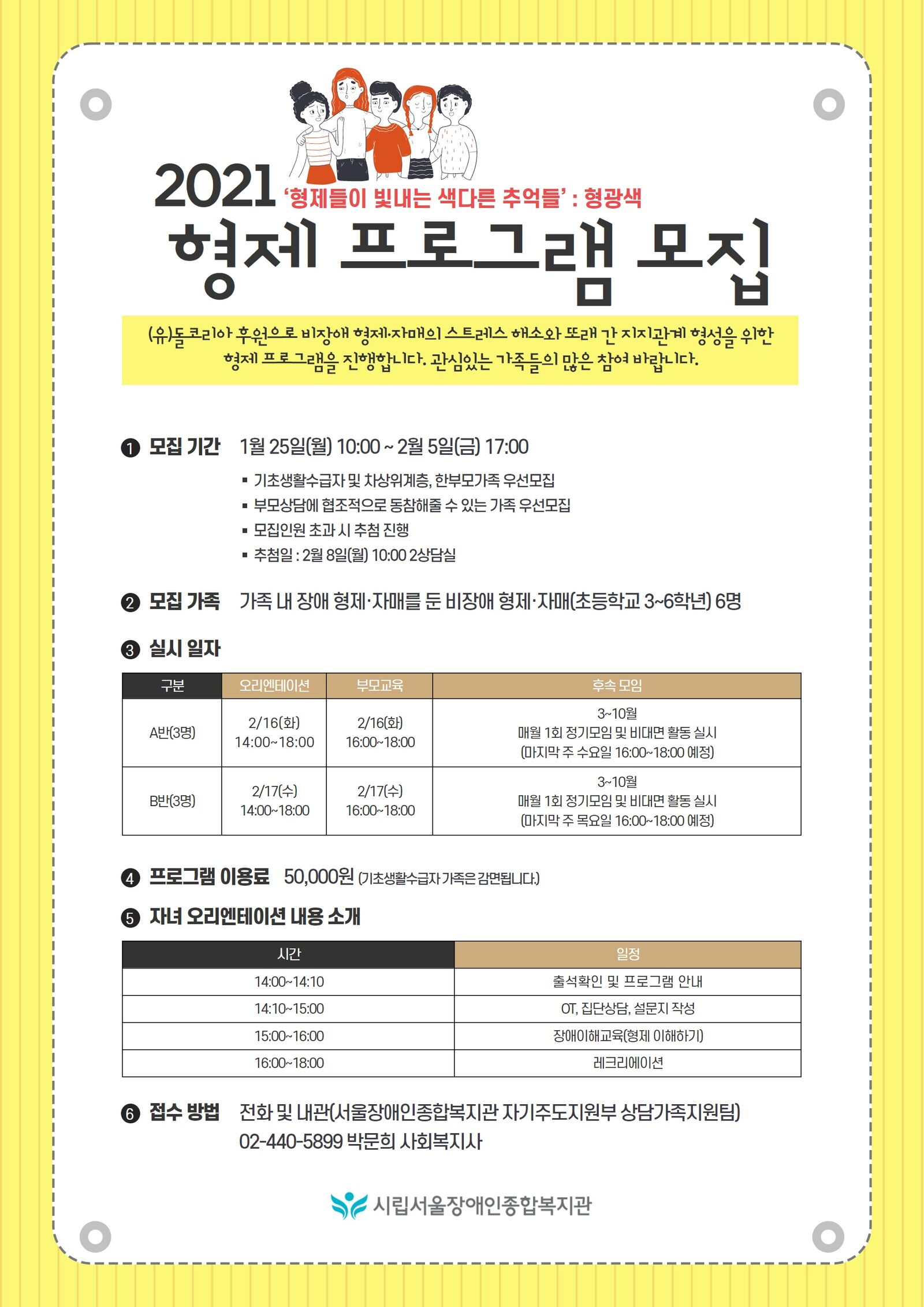2. 모집가족 : 가족 내 장애 형제·자매를 둔 비장애형제·자매(초등학교 3~6학년) 6명