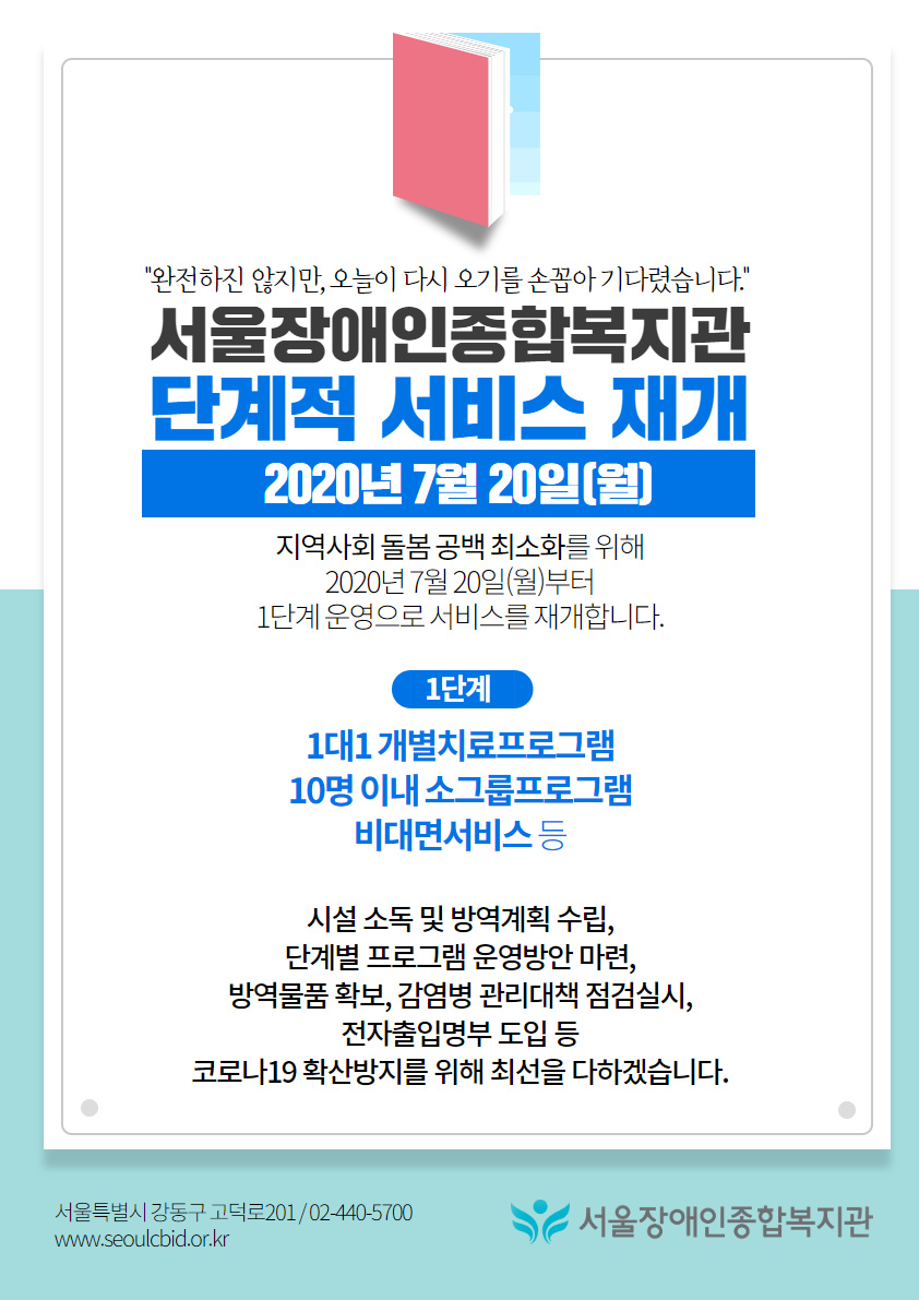 7월 20일(월), 복지관 서비스를 부분 재개 합니다.