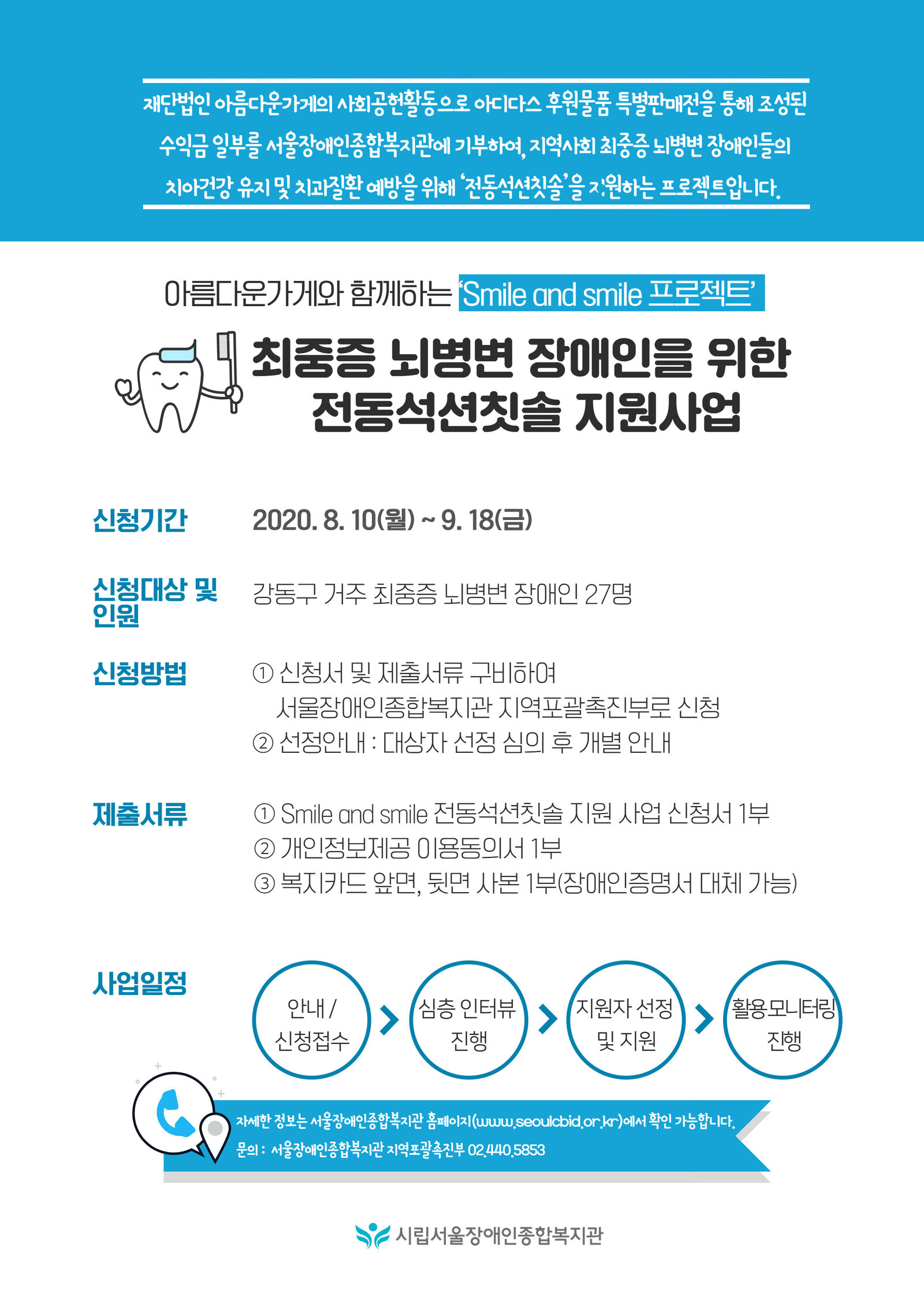 아름다운가게와 함께하는 'Smile and smile 프로젝트' 최중증 뇌병변 장애인을 위한 전동석션칫솔 지원사업
