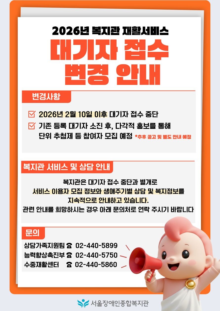 2026년 복지관 재활 서비스 대기자 접수 변경 안내