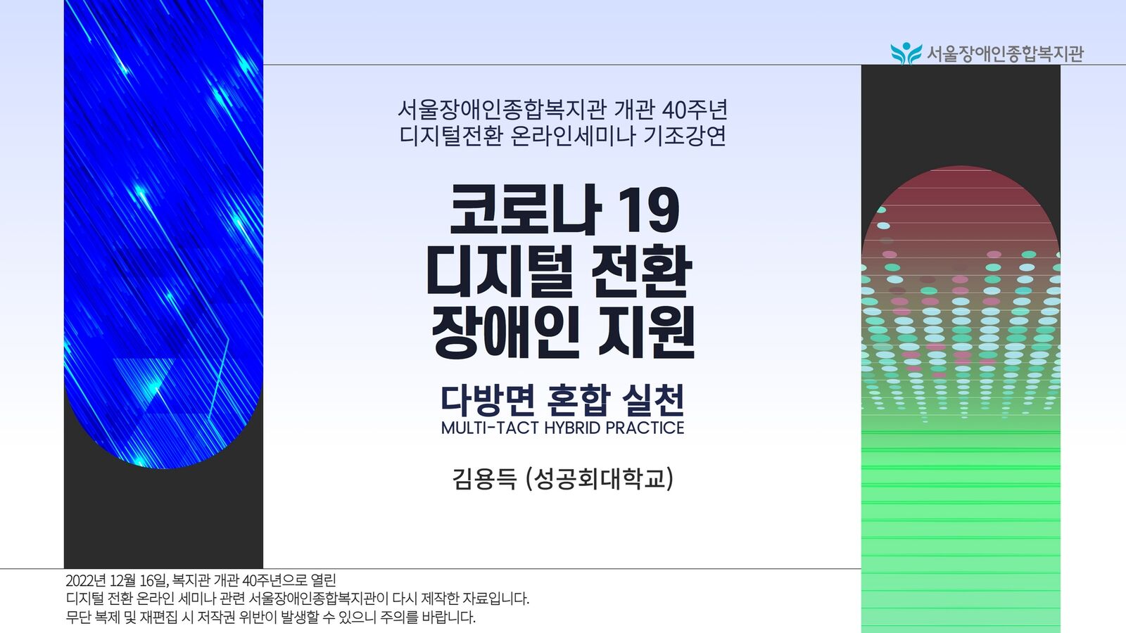 서울장애인종합복지관 개관 40주년, 디지털 전환 온라인 세미나 - [기조강연]김용득 교수 "코로나19, 디지털 전환, 장애인지원-다방면 혼합 실천" 자료