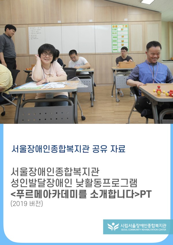 성인발달장애인 낮활동프로그램, 푸르메아카데미 소개 PT