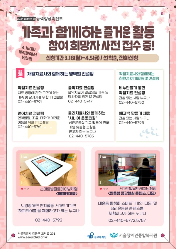 마감 2024.4.16(화) 능력향상촉진부 『가족과 함께하는 즐거운 활동』 행사 참가자 모집(~4.15 모집기간 연장)