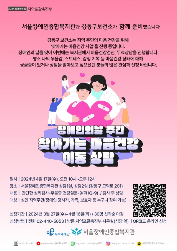 장애인의 날을 맞아 보건소에서 서울장애인종합복지관으로 직접 방문하여 마음건강검진, 무료상담을 진행합니다.